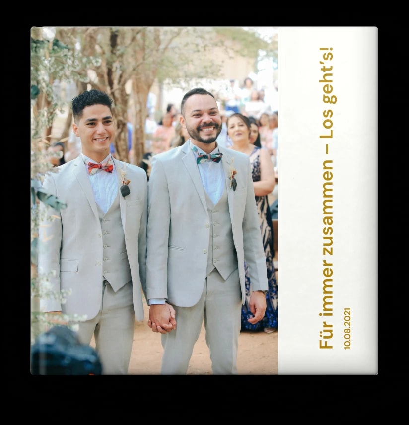 Gestaltet euer persönliches Hochzeitsbuch, das euch an die Versprechen erinnert, die ihr einander gegeben habt, an die Liebe, die euch umgibt, und an die Träume, die ihr vom ersten Tag an miteinander geteilt habt. Erlebt jeden Moment noch einmal mit einem besonders hochwertigen Layflat-Hochzeitsalbum; bedankt euch bei all jenen, die es möglich gemacht haben, mit einem persönlich gestalteten Fotobuch eures großen Tages, und druckt eure Lieblingsmomente aus, um sie in eurem Zuhause zu präsentieren.