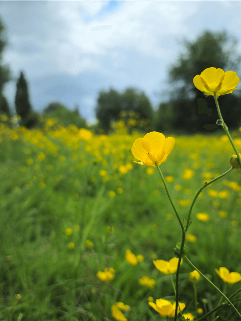 Smartphones erzeugen von Natur aus eine sehr große Schärfentiefe, was sich besonders dafür eignet, Aufnahmen mit gleichmäßiger Schärfe zwischen Vordergrund und Hintergrund zu machen – zum Beispiel von Blumen, die im Vordergrund stehen, während hinter ihnen die Landschaft bis zu den fernen Bergen reicht.