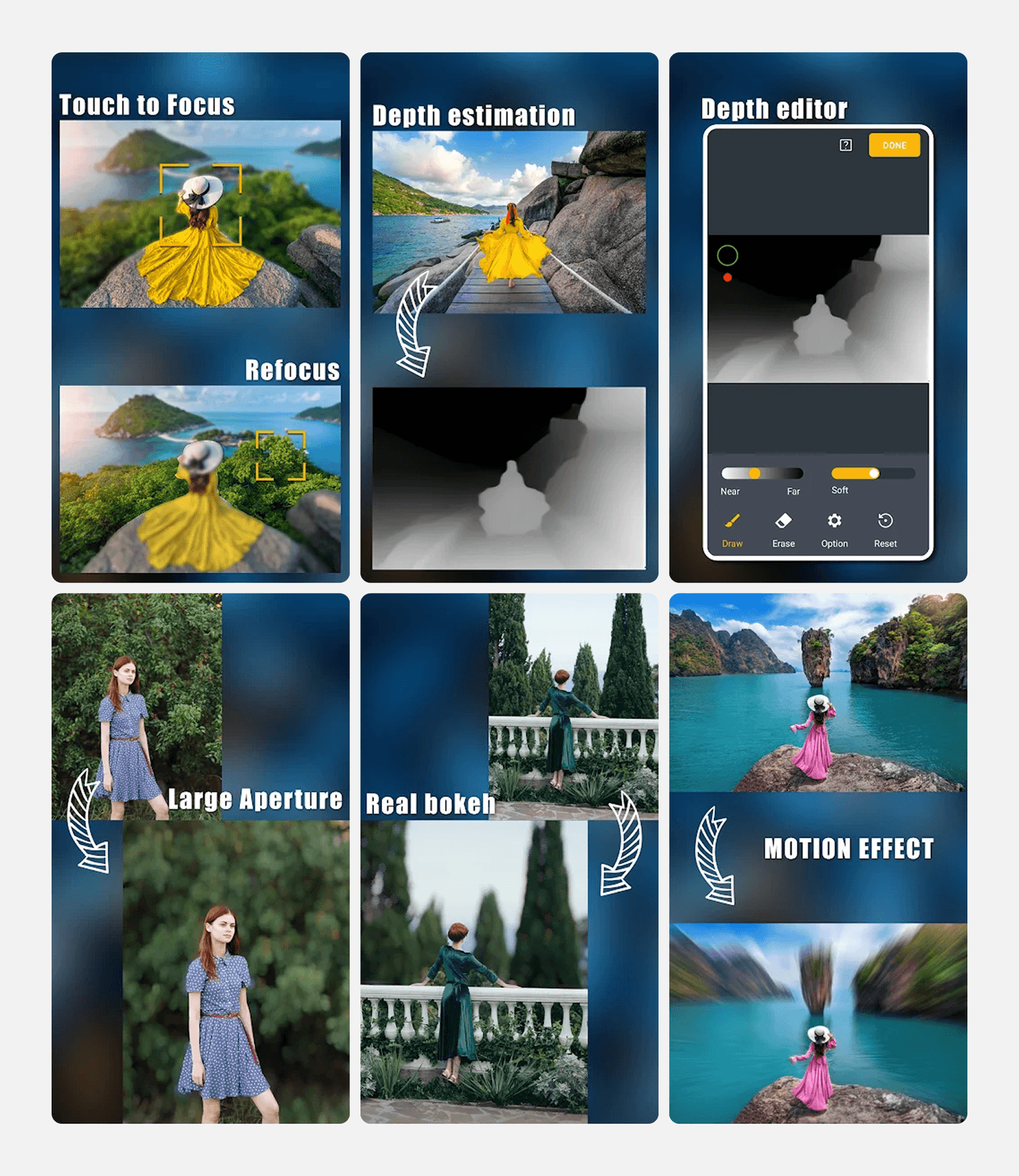 Diese App kann Tiefe besonders gut einschätzen, um Fokusbereiche in deinen Bildern zu erkennen, und gibt dir viel Kontrolle darüber, wie nah oder fern beziehungsweise wie scharf oder unscharf der Fokuspunkt sein soll. Außerdem kann sie realistische Bokeh-Effekte anwenden.