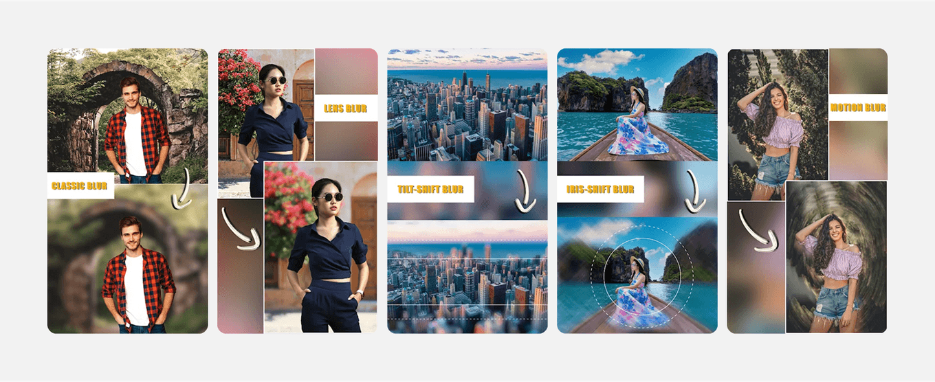 Auto Blur ist eine schnelle und benutzerfreundliche App, mit der du tolle Weichzeichner-Effekte für deine Hintergründe erzielen kannst. Es stehen mehrere Optionen zur Auswahl, darunter der klassische Weichzeichner, Objektiv-Unschärfe, Tilt-und-Shift-Effekte, Bewegungsunschärfe und Iris-Effekte mit intelligenter automatischer Fokussierung und Hintergrundfiltern, die die Auswahl des Motivs und die Unschärfe des Hintergrunds erleichtern.