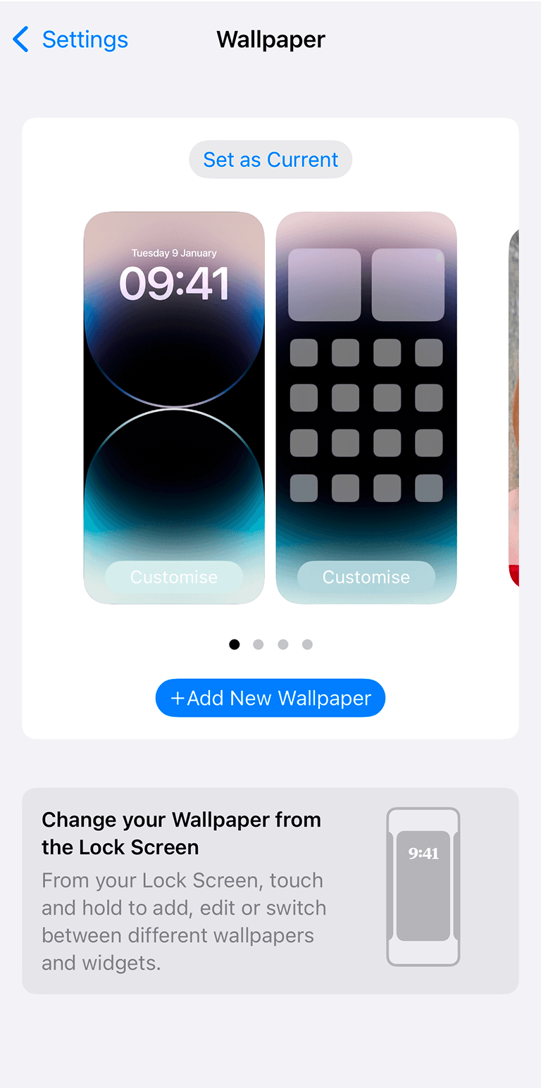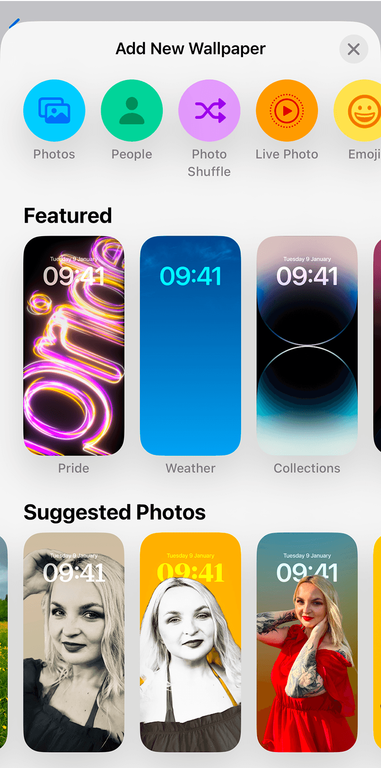Um diese Funktion zu nutzen, brauchst du erst mal ein Foto, das im Porträtmodus mit der Kamera-App des iPhones aufgenommen wurde. Geh auf deinem Startbildschirm zu „Einstellungen“ > „Hintergrundbild“ (du kannst auch über den Sperrbildschirm darauf zugreifen) und wähl „Neues Hintergrundbild hinzufügen“. Tipp auf „Fotos“ und scroll nach unten, um das Bild im Porträtmodus zu finden, das du verwenden möchtest.