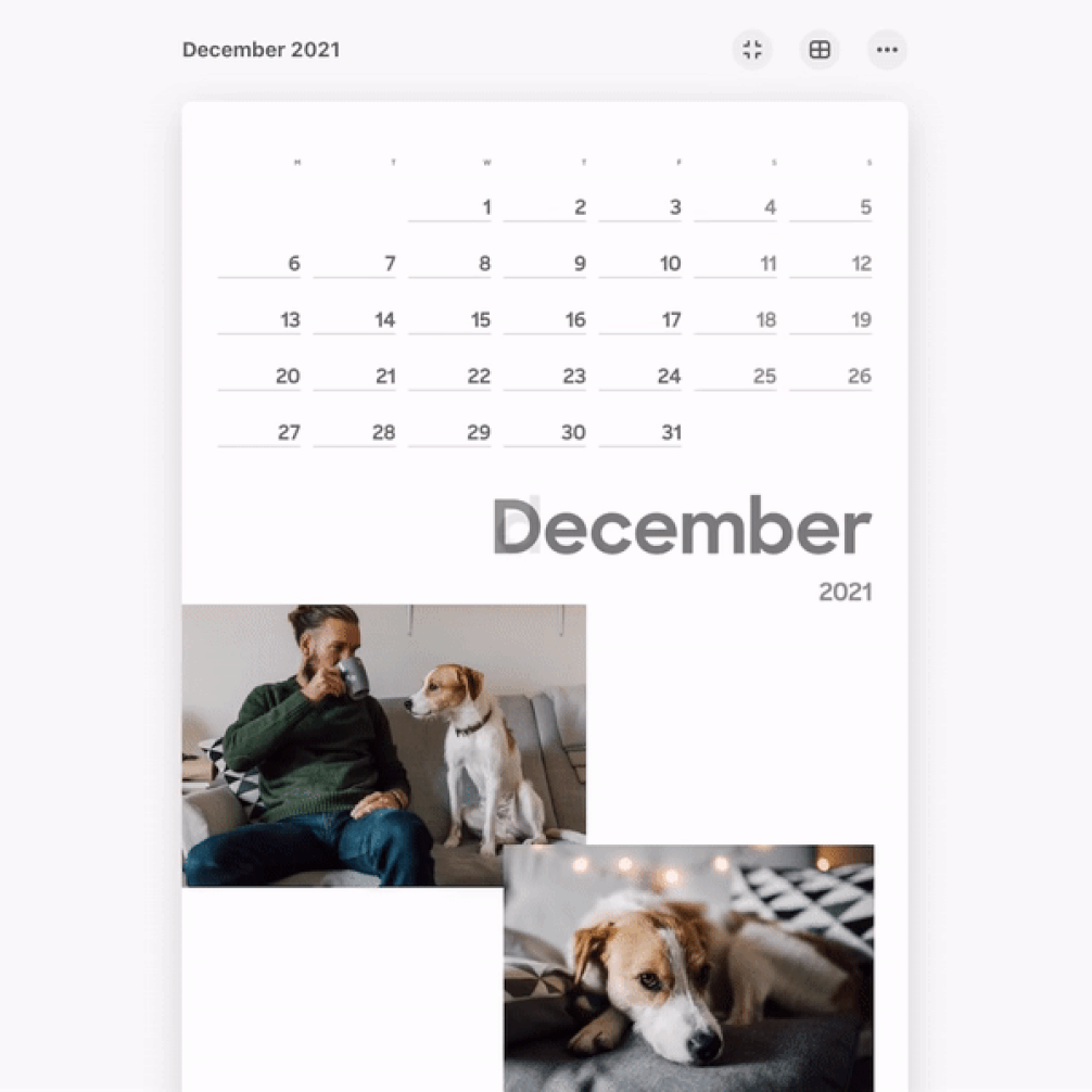 Back when prototyping our calendar designs we had made an assumption that there would only be a need for one photo per page. A bit like the Countryfile calendar you might buy for your Grandmother – one stunning photo that represents that month. Everyone we showed it to loved the designs, so we implemented it just like that.