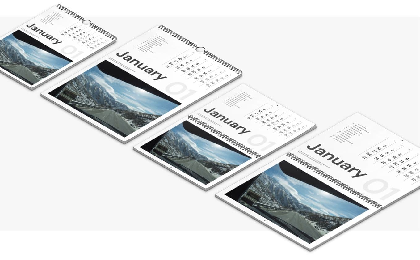And if all that wasn’t complicated enough, our printers in the U.S. and Australia did not have the tooling to produce our poster-style portrait calendars. So we came up with a separate range of templates in a central-bound landscape format especially for those markets.