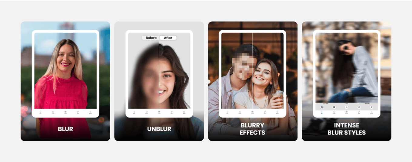 Blur your pictures at the touch of a finger with the Blur Background app to make your portraits pop, blur backgrounds and apply artistic blur effects, filters and text effects.