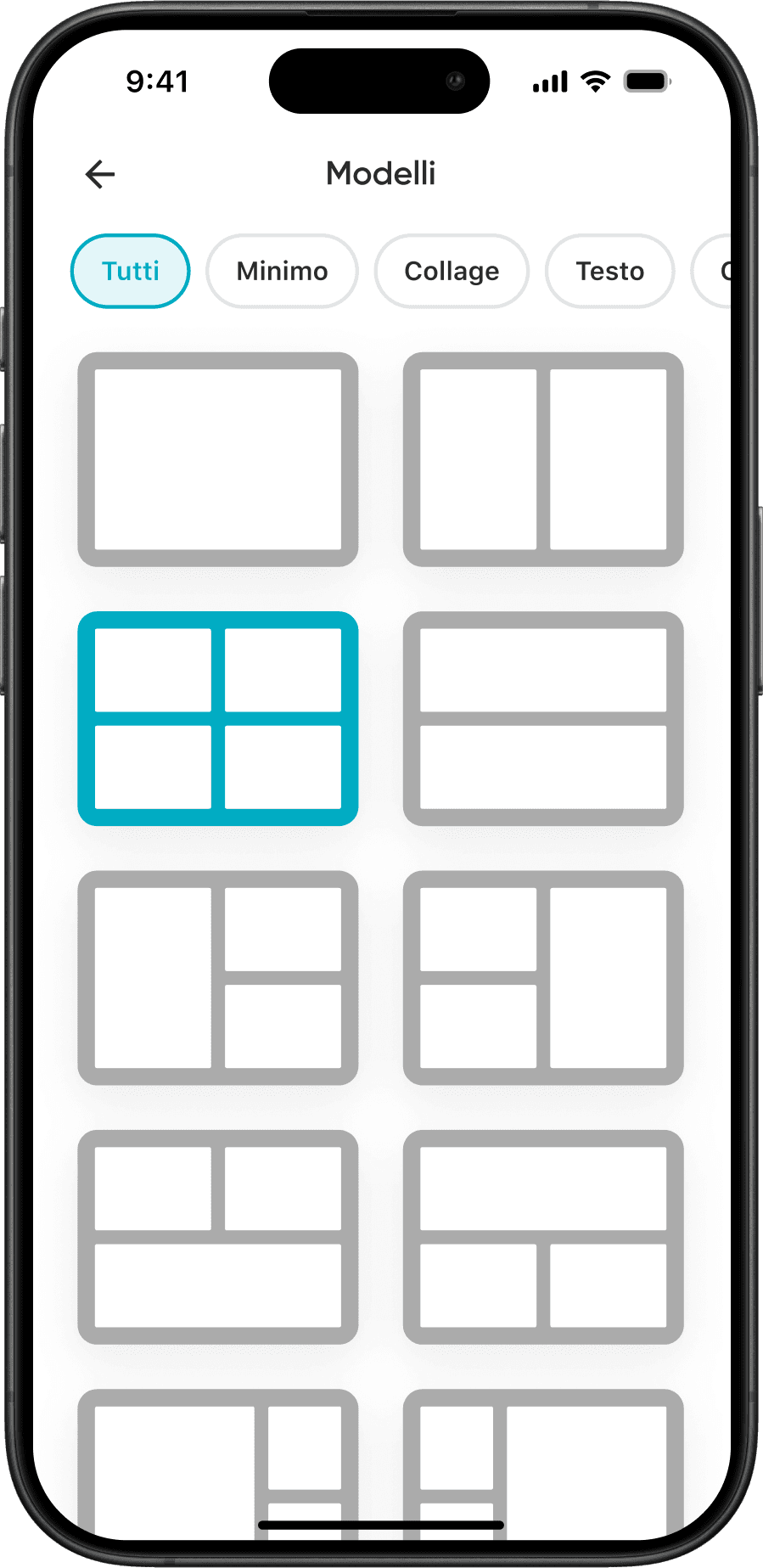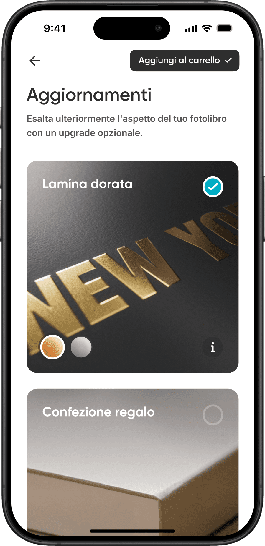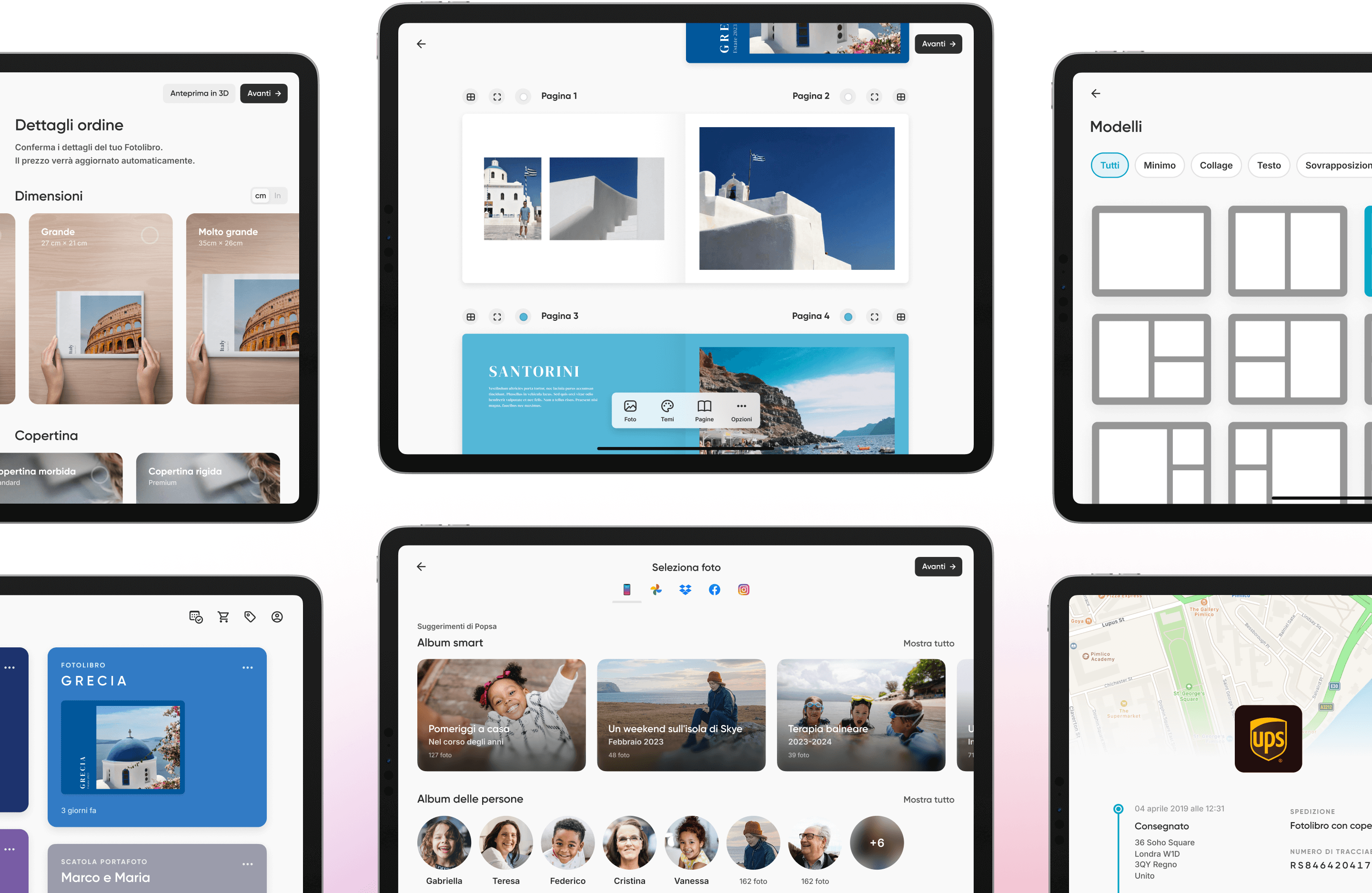La nostra app organizza in modo intelligente le foto per raccontare la tua storia, scegliendo la più bella per la copertina. Ogni immagine è abbinata al modello perfetto.