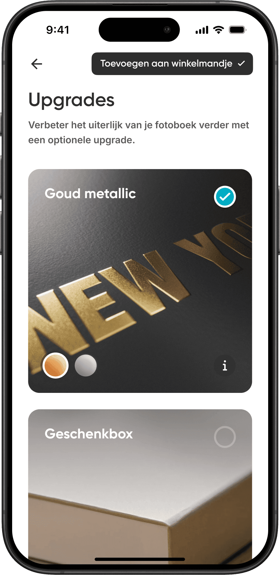 Onze app rangschikt je foto's op slimme wijze om je verhaal te vertellen. Voor de omslag wordt de beste foto gekozen en elke afbeelding wordt aan het perfecte sjabloon gekoppeld.