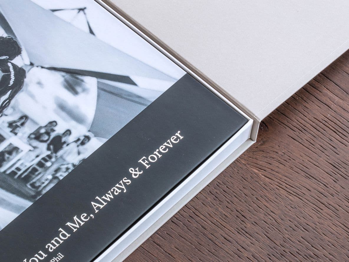 Elevate your anniversary gift with metallic gold or silver lettering on the front and spine of your Photo Book.