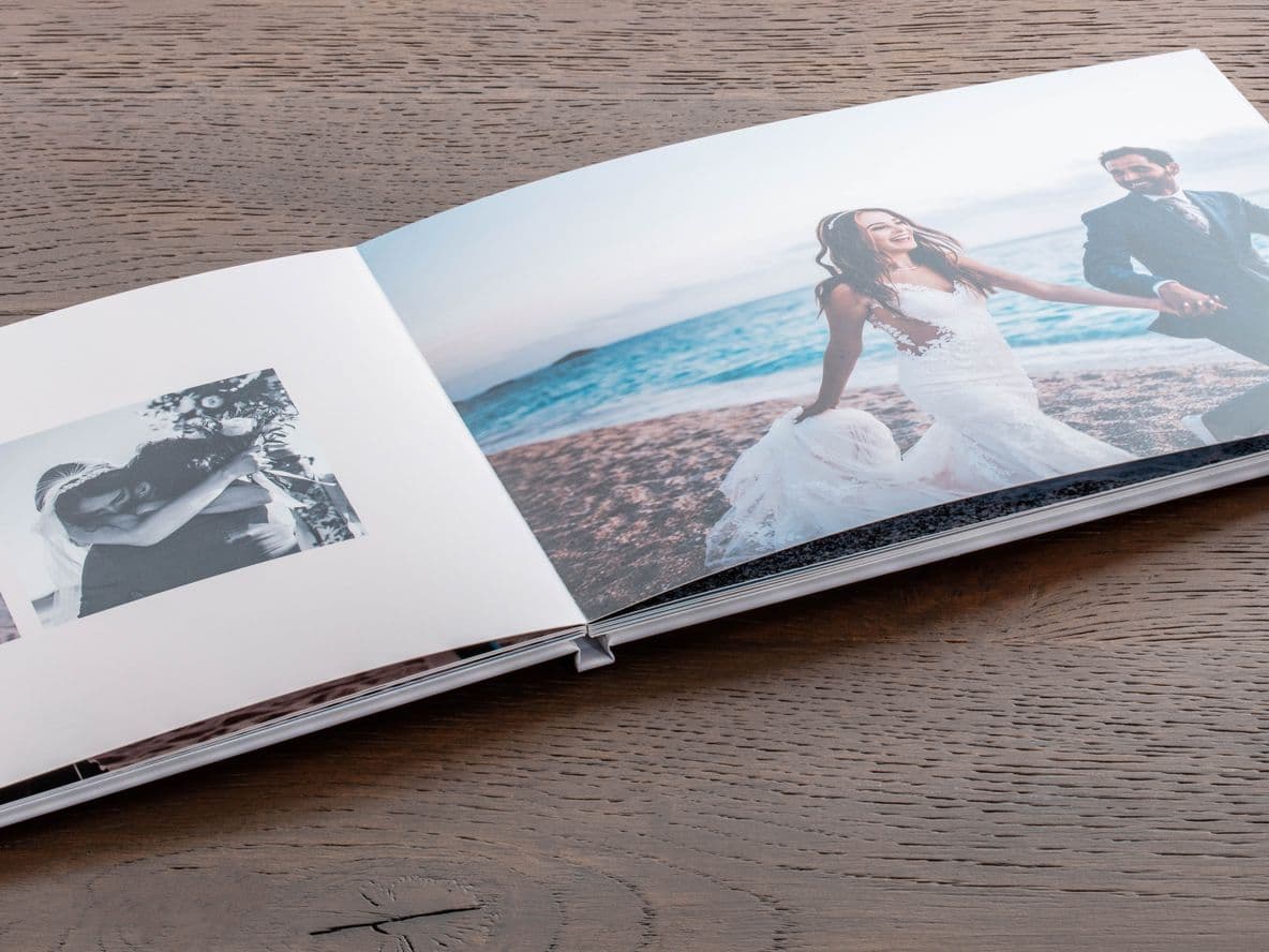 Choose layflat binding and let your wedding day Photo Book flow in uninterrupted style – built to last for a lifetime of revisiting. Upgrade at the checkout and relive your happiest day in seamless beauty.