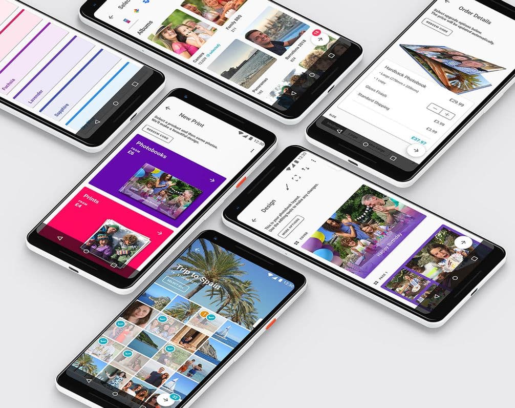 The design of the app is based on our own flavour of Material Design with muted App Bar colours to allow the user's content to be the star of the show.