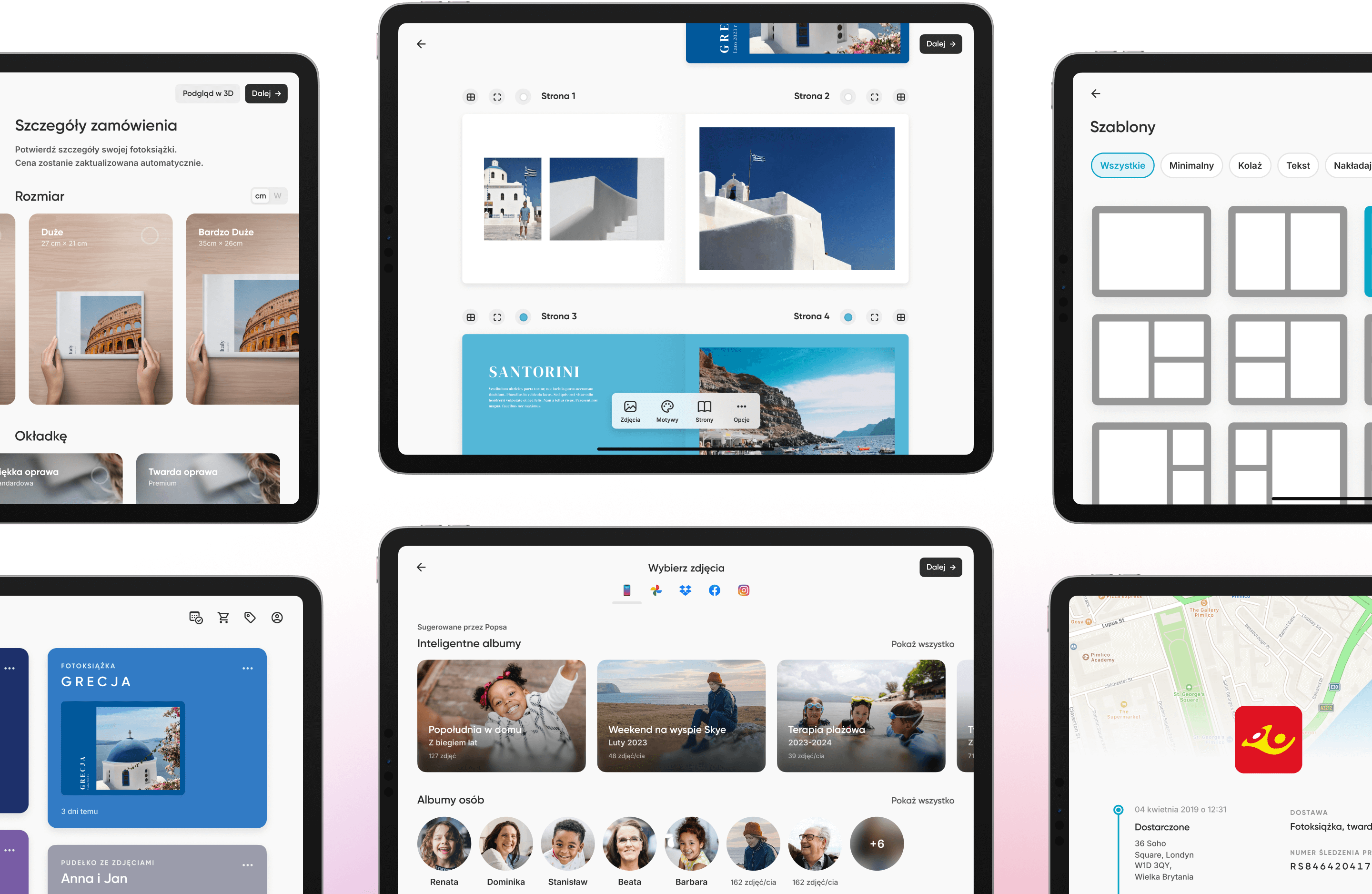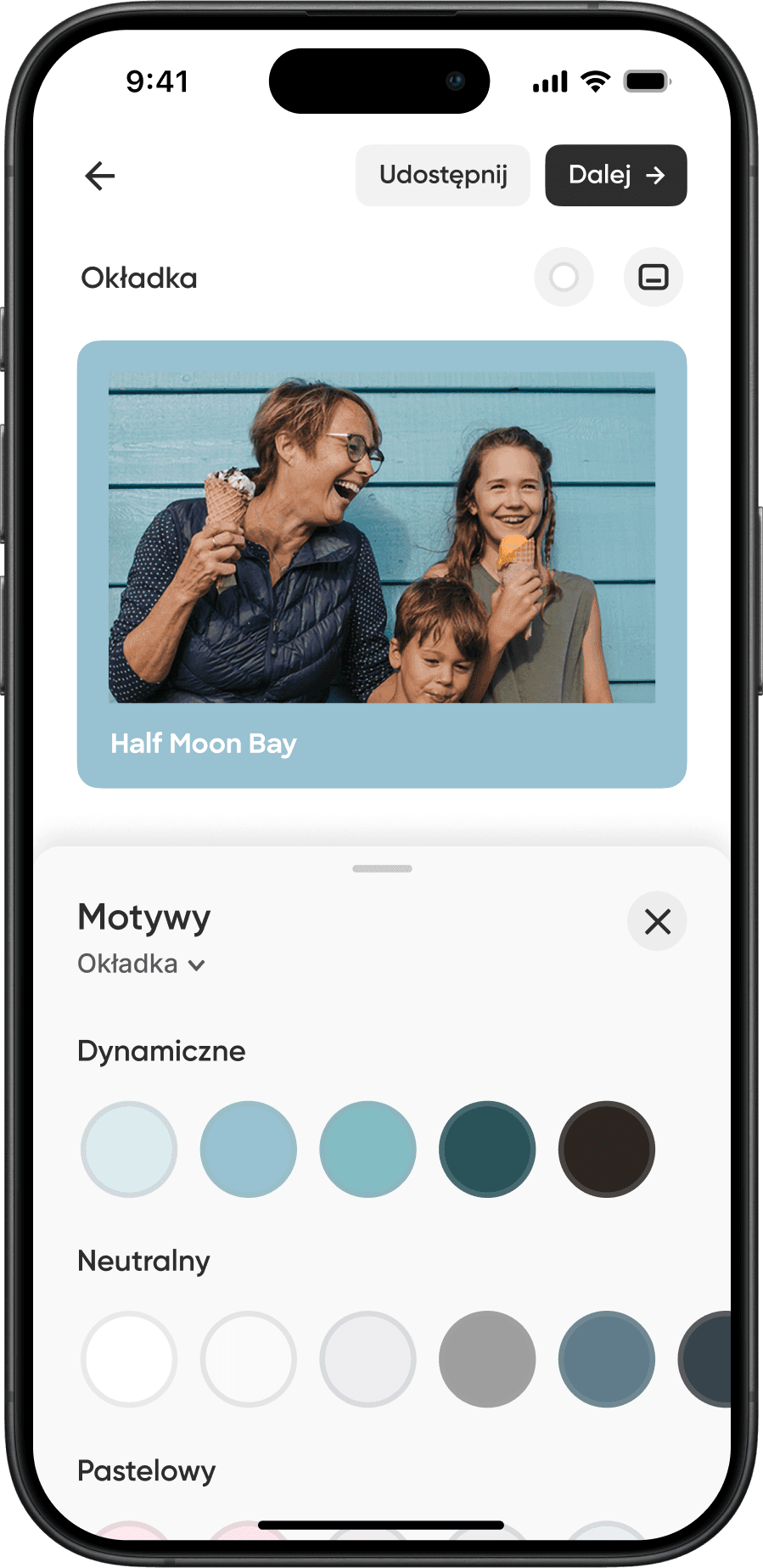 Nasza aplikacja inteligentnie rozmieszcza zdjęcia, aby opowiedzieć Twoją historię. Wybiera najlepszy kadr na okładkę i znajduje idealny szablon dla każdego zdjęcia.