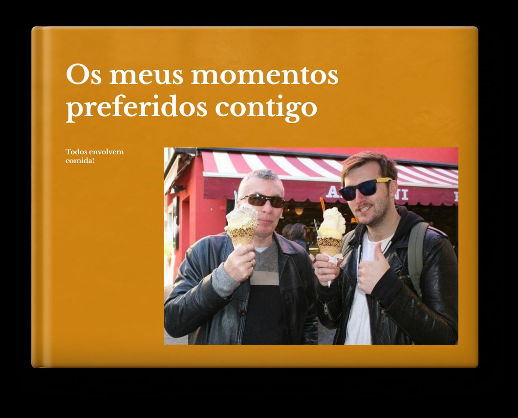 Queria surpreendê-lo com algo que mostrasse o quanto ele significa para nós. Por isso, embrulhei um álbum da Popsa cheio das nossas recordações favoritas. Sentámo-nos juntos, os três, virando cada página com o nosso filho a apontar e a rir. Olhou para mim e disse: "Isto vale tudo" E foi assim mesmo.
